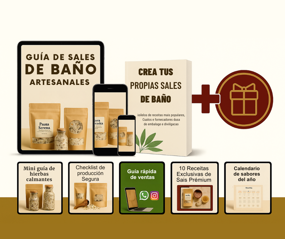 ✅ Aprende a seleccionar, diseñar y montar empaques artesanales que elevan el valor de tus sales de baño — ideales para vender, regalar o destacar en redes sociales.