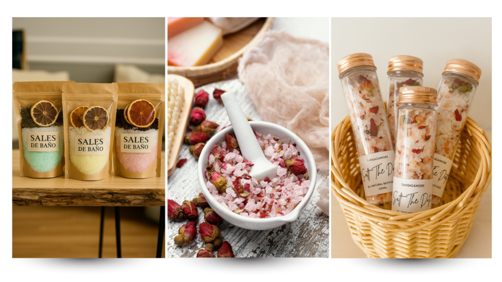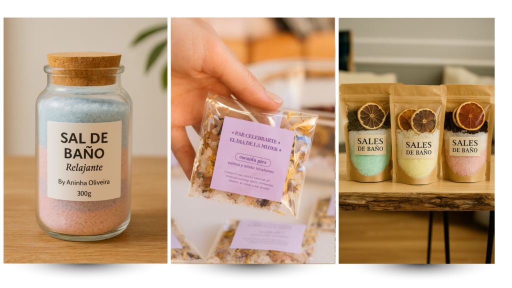✅ Mezclas artesanales con sales, flores y aceites esenciales que transforman tu baño — perfectas para regalar o vender con elegancia.
